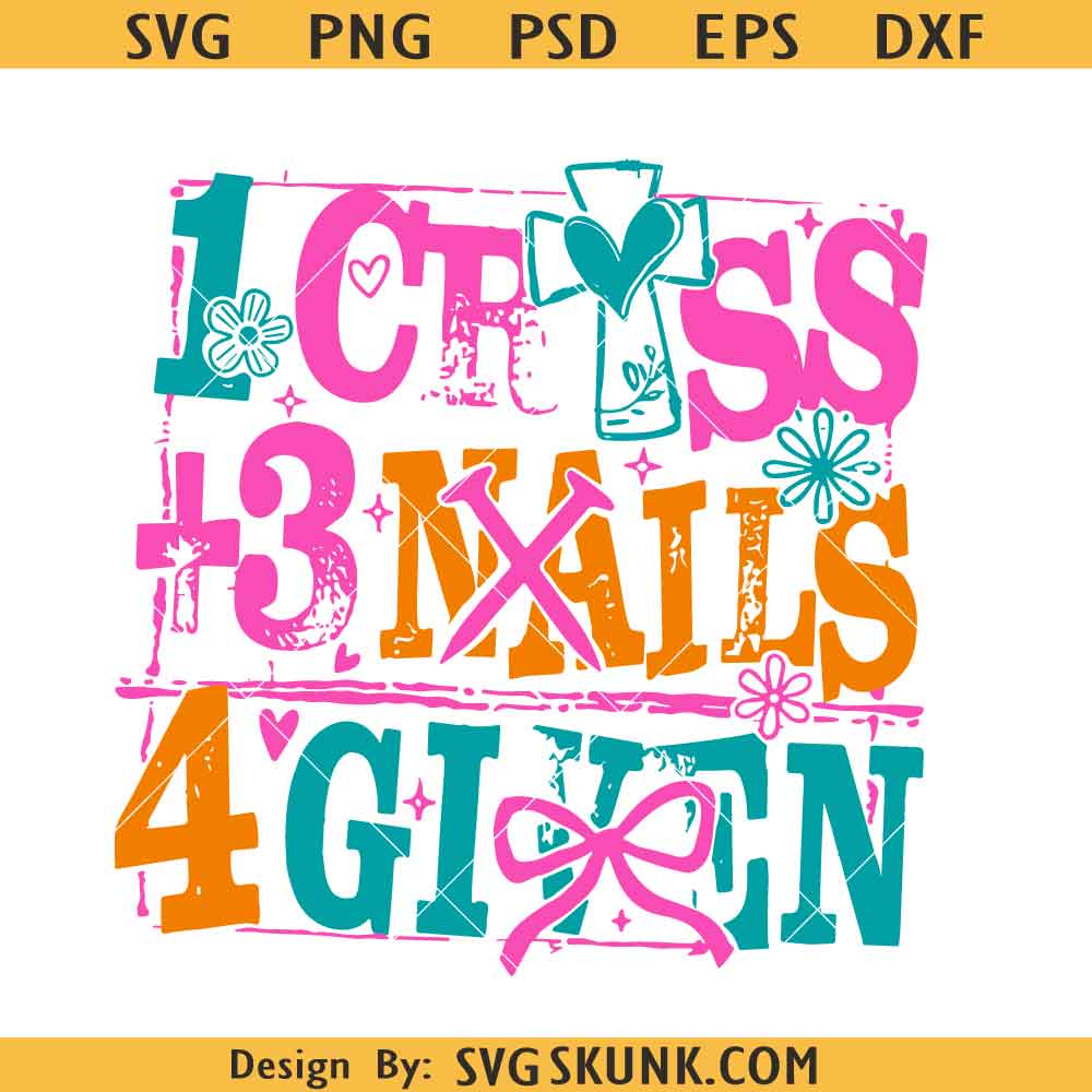 1 Cross 3 nails 4 Given Christian Easter PNG SVG, Jesus Easter Cross Bible Verse Png SVG, He is Risen Png SVG