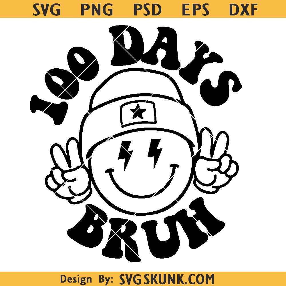 100 Days Bruh smiley face SVG PNG, retro smiley face svg, 100 day of school svg