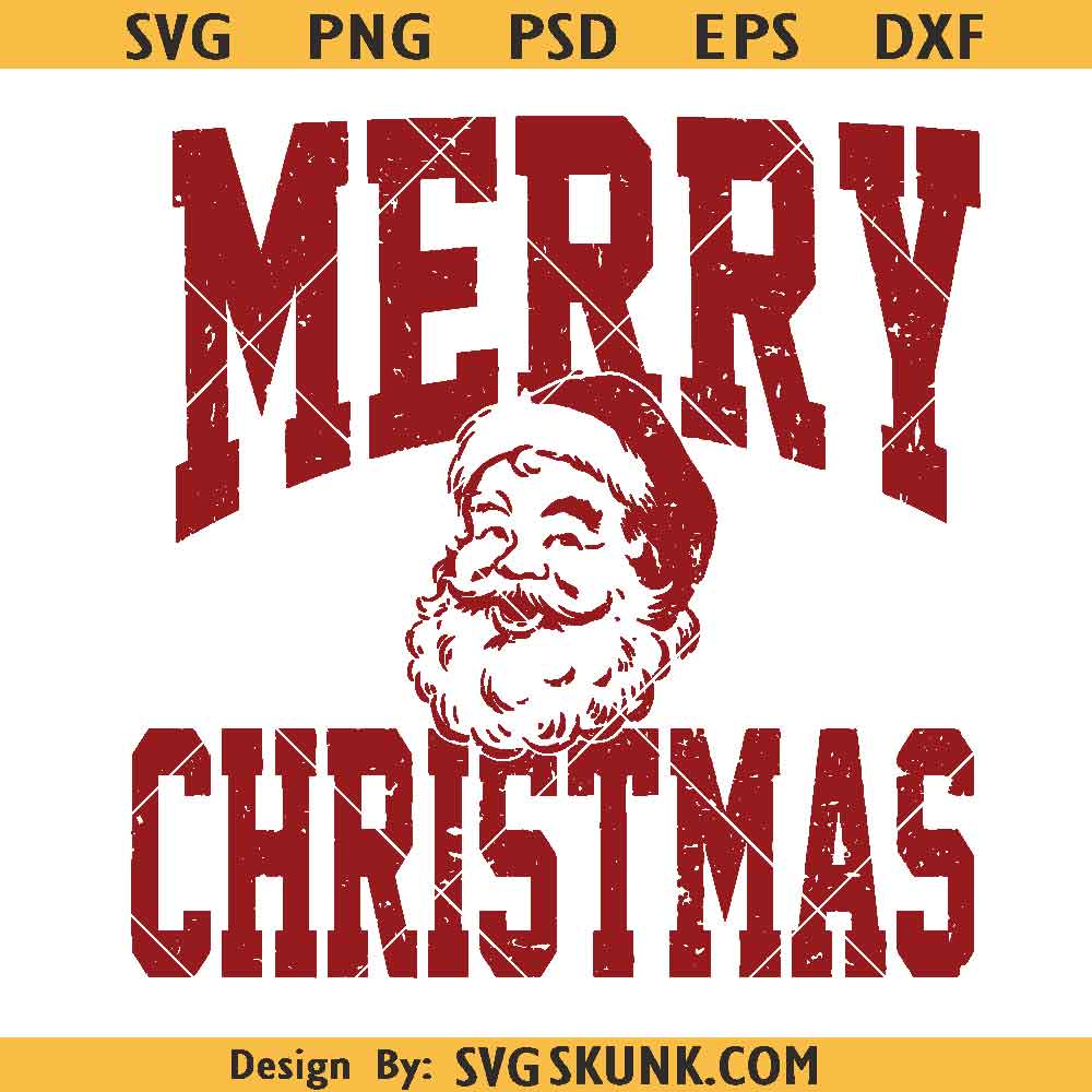 Distressed Merry Christmas with Santa svg, Vintage Santa Christmas png, Santa Claus svg, Christmas Shirt svg