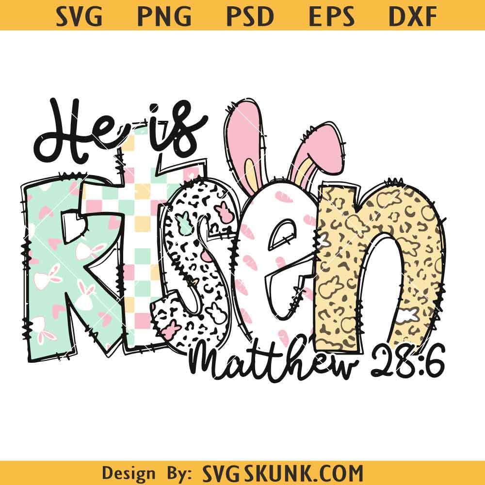 He is Risen SVG, Matthew 28:6 SVG, Risen SVG, retro easter doodle SVG, Easter Christian Png SVG