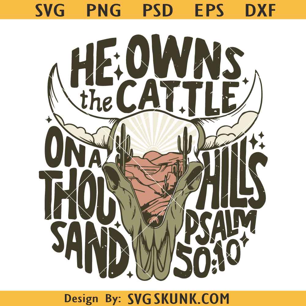He Owns the Cattle On a Thousand Hills svg, Christian Western png SVG, Cowboy SVG