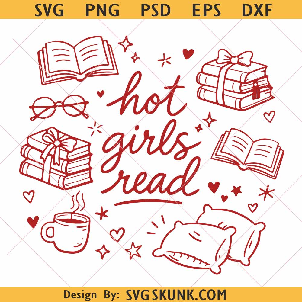Hot girls read SVG PNG, Preppy Book PNG, Trendy Bookish Png, Girly Book Lover Sublimation Design