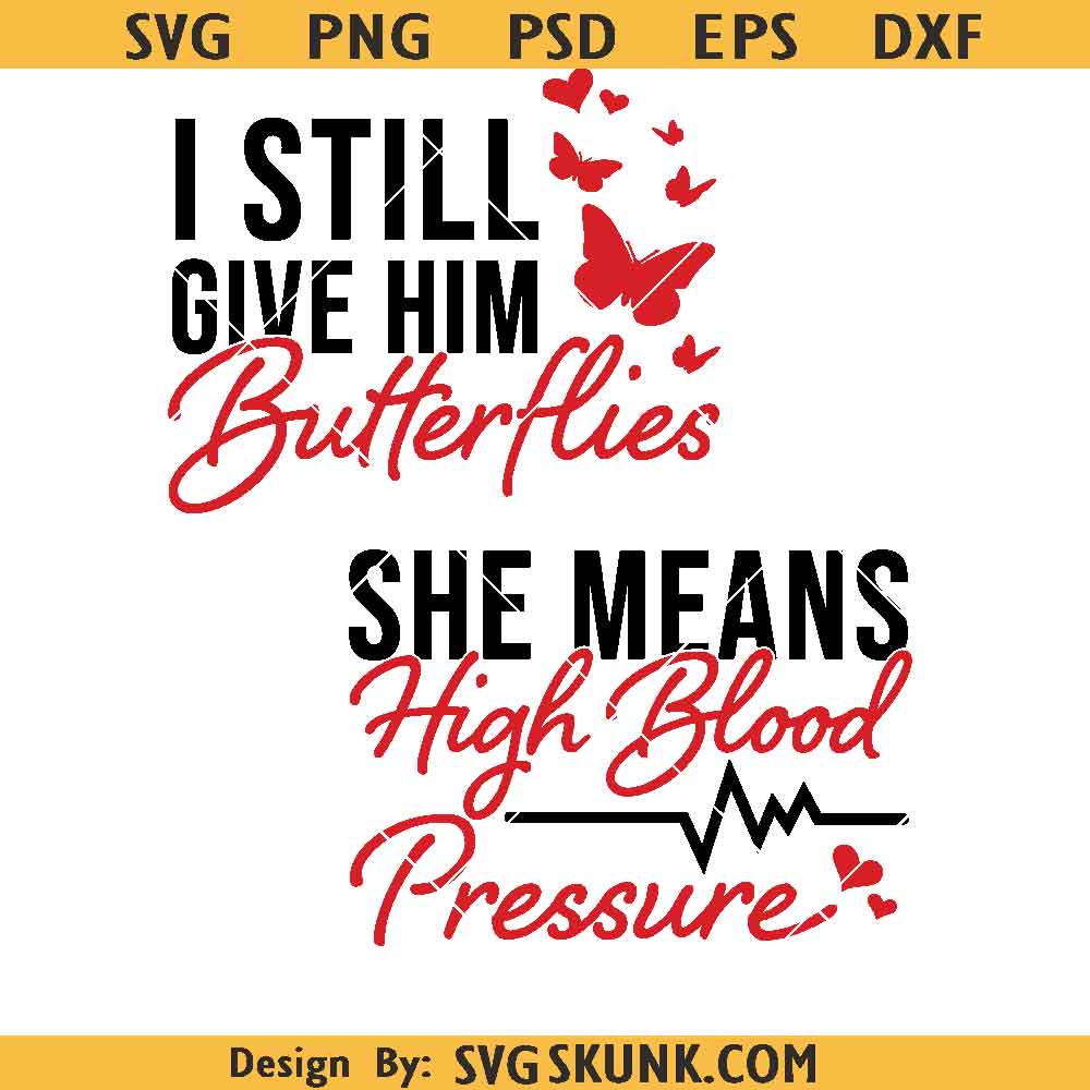 I still give him butterflies funny couple Valentine SVG, She Means High Blood Pressure svg, Funny Valentine Couple svg