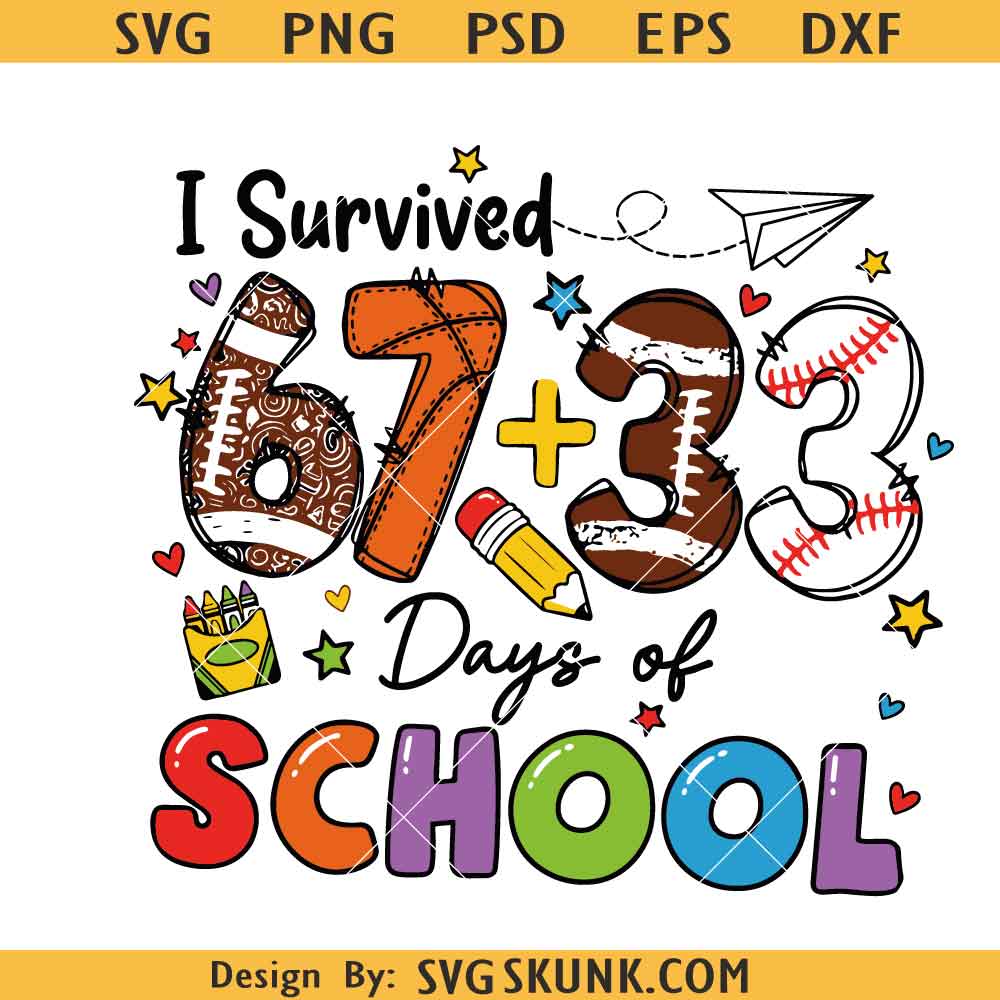 I Survived 67+33 Days Of School SVG, School Png SVG, 100 Days Of School SVG