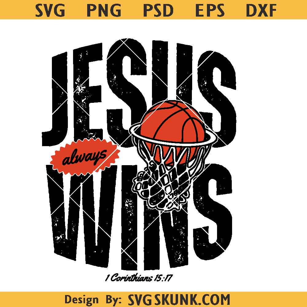 Jesus Always wins Basketball SVG PNG, God Always Wins Design svg, Retro Christian Basketball SVG PNG