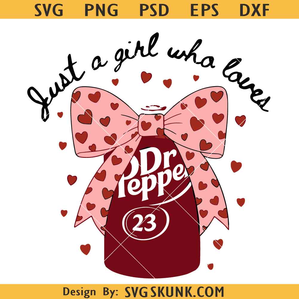 Just a Girl Who Loves Dr Pepper svg, Soda Lover Sublimation with Pink Bow svg, Dr Pepper svg