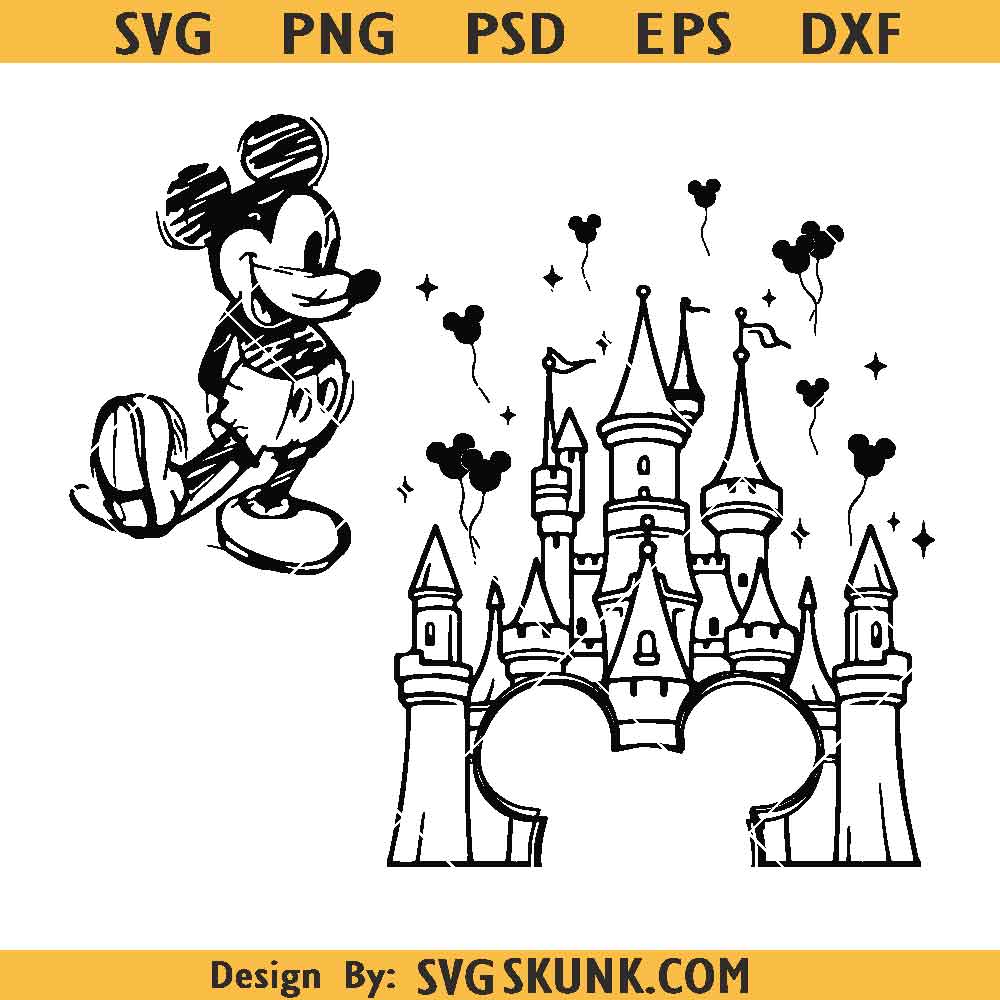 Magical Castle SVG PNG DXF, mickey sketch svg png, Disney castle svg png
