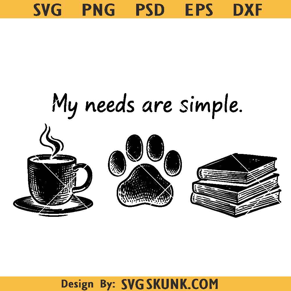 My needs are simple SVG PNG, Coffee dogs books PNG SVG, dog lover svg
