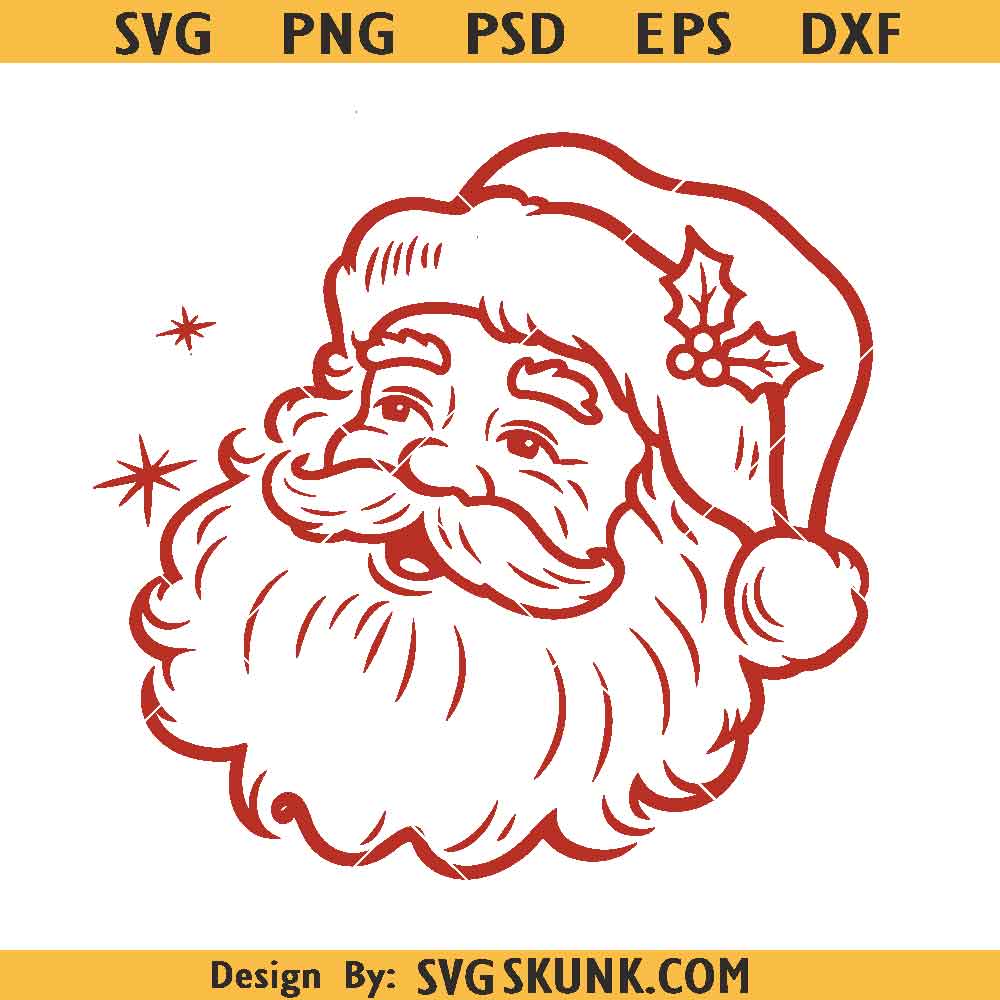Santa Face SVG, retro Santa face SVG, cute Santa SVG, Santa Cut File, Santa Face Clip Art