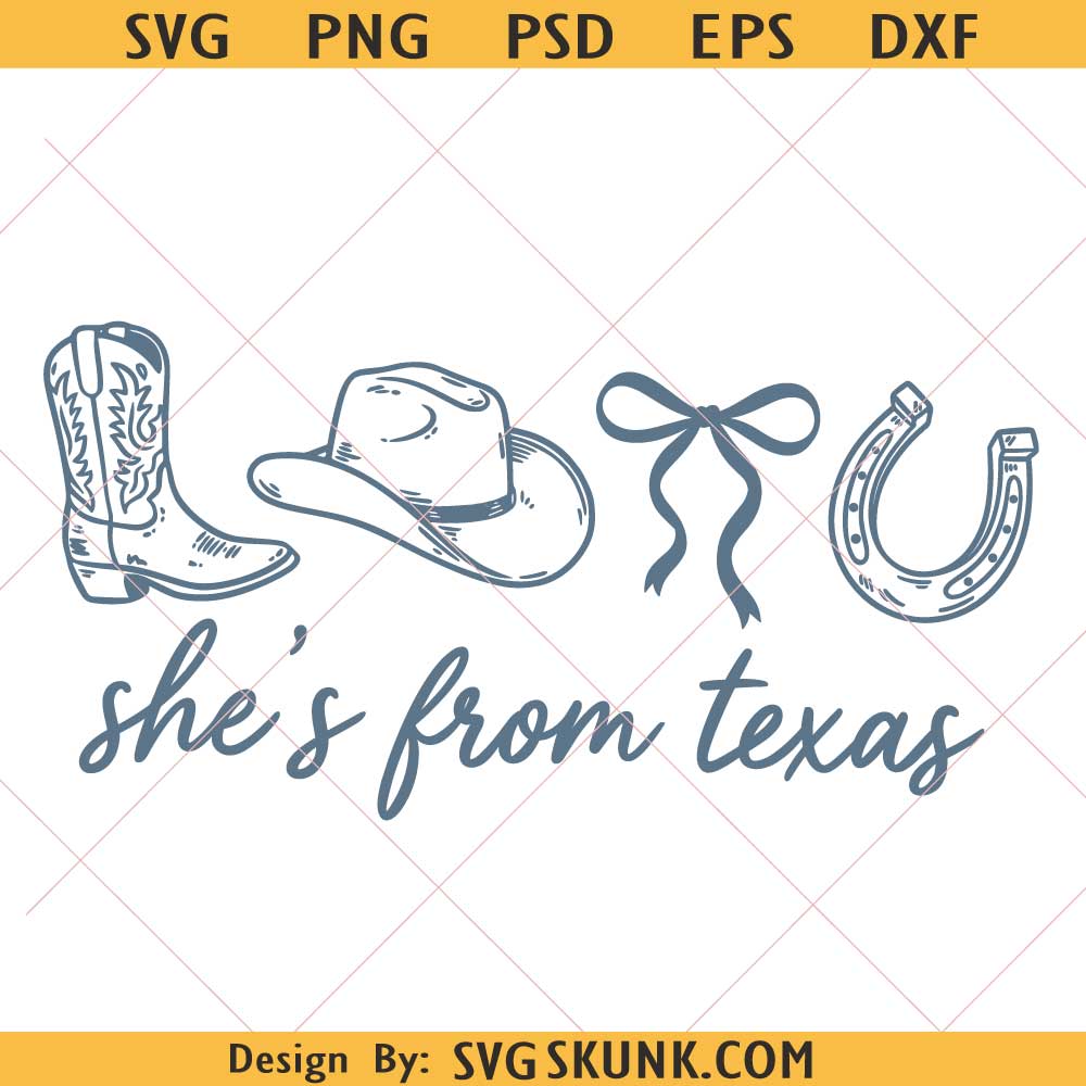 She’s From Texas PNG, Western Coquette Bow svg png, Cowboy Boot Hat Bow Horseshoe design