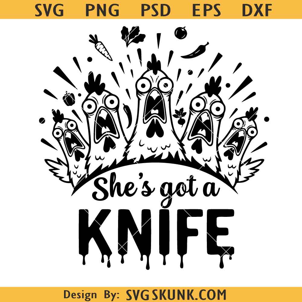 She’s Got a Knife SVG PNG, Funny Chicken Cutting Board SVG, Vegetables SVG