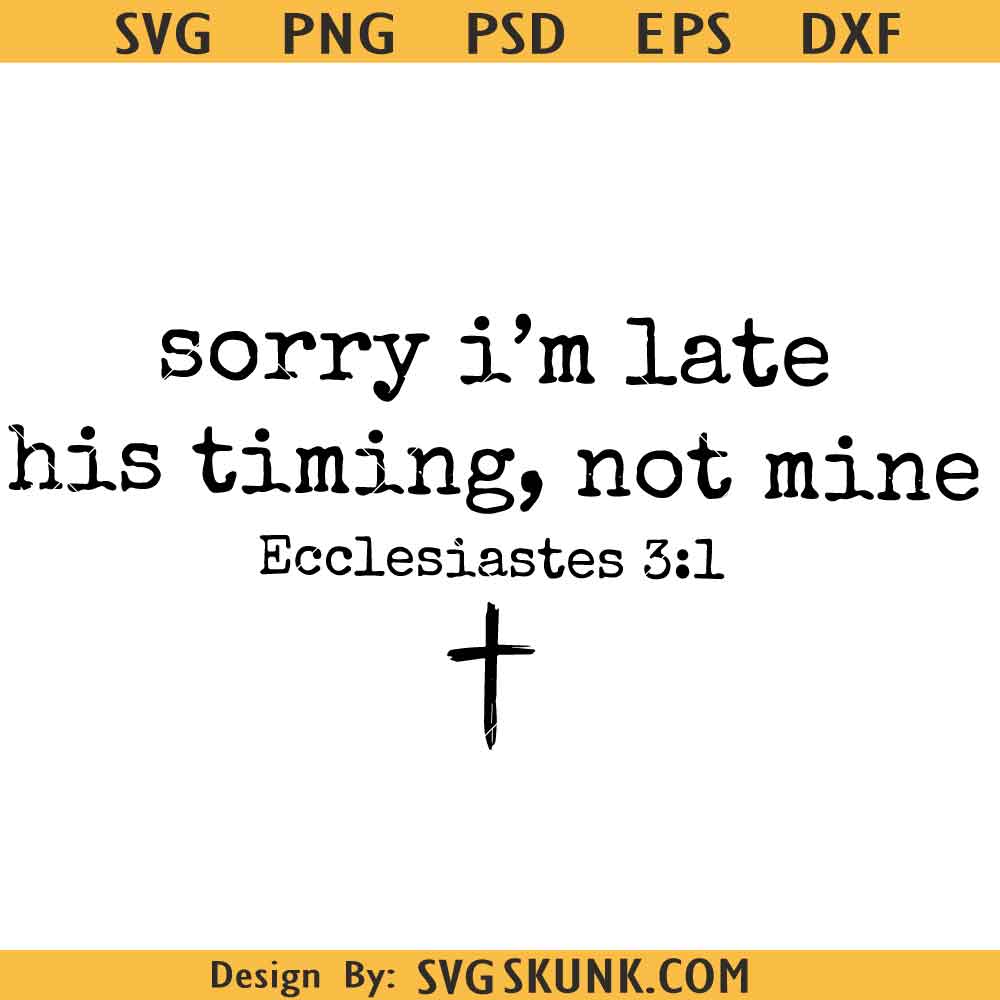 Sorry I’m Late His Timing Not Mine PNG SVG, Faith Bible Verse SVG, Christian SVG