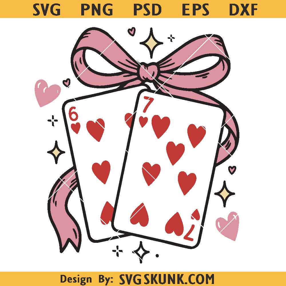 Valentine Coquette Bow Card SVG, Valentine playing card svg, Card coquette bow svg png