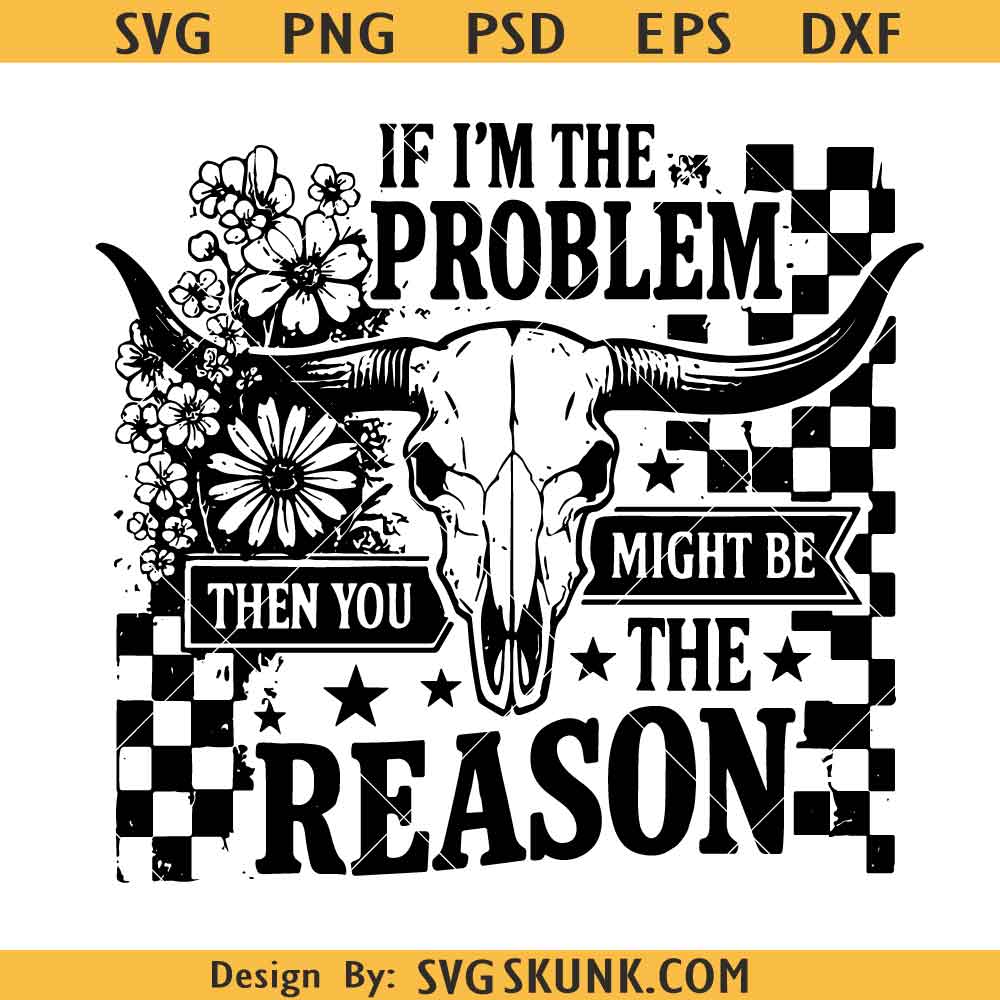 Western Skull svg, If I’m the Problem svg, Country Cow Skull Sublimation svg, Floral Western Quote PNG, Grunge Cowgirl svg